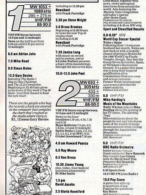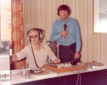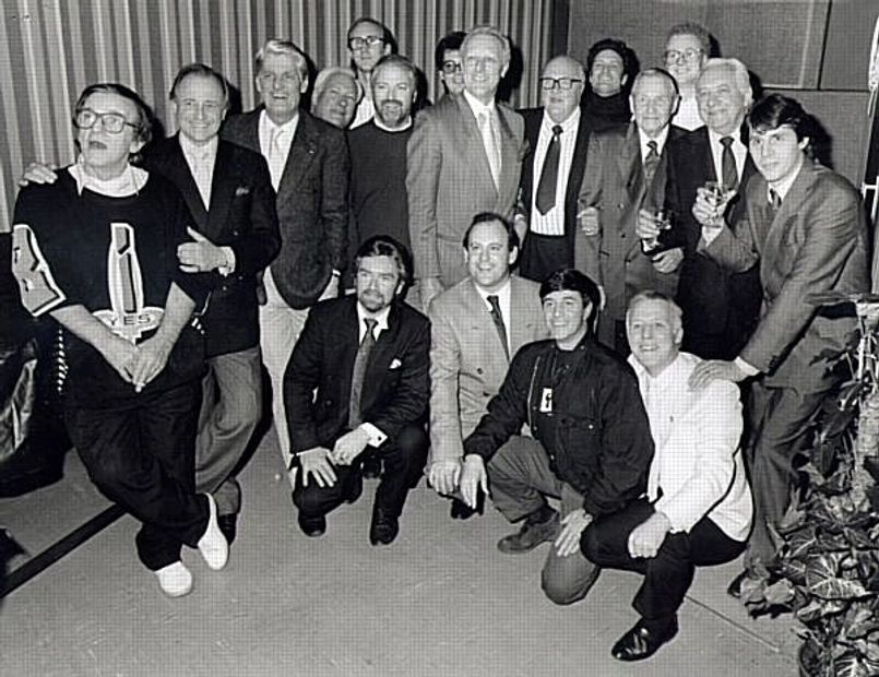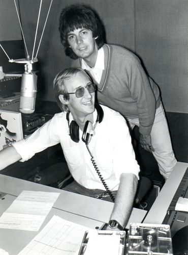 (Back from left); Keith Fordyce - Howard Pearce - Mike Read - Peter Anthony - Jeff Graham (Middle from left) Alan Freeman - David Jacobs - Pete Murray - Pete Brady - Don Moss - Geoffrey Everett - Stephen Williams - Hughie Green - Mark Wesley (Front from left) Noel Edmonds - Rob Jones - Tony Prince - Dave Eastwood