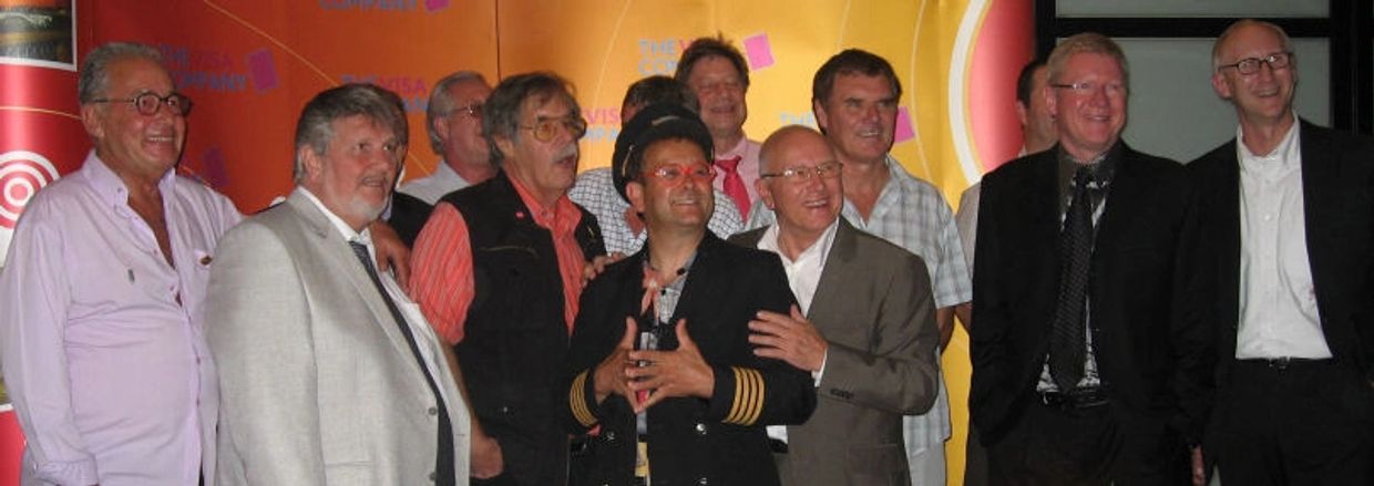 From the left; Timmy Mallett, Mark Wesley, Tony Prince, Mike Read, The Luxembourg Ambassador to the UK Jean Olinger (and former RTL employee), Peter Anthony, Howard Pearce and Pete Murray